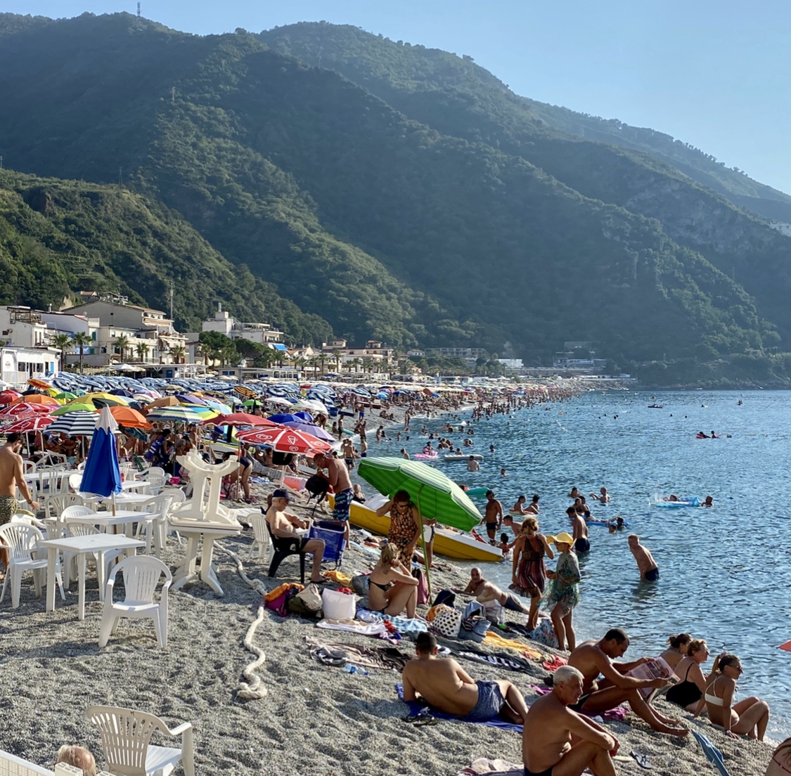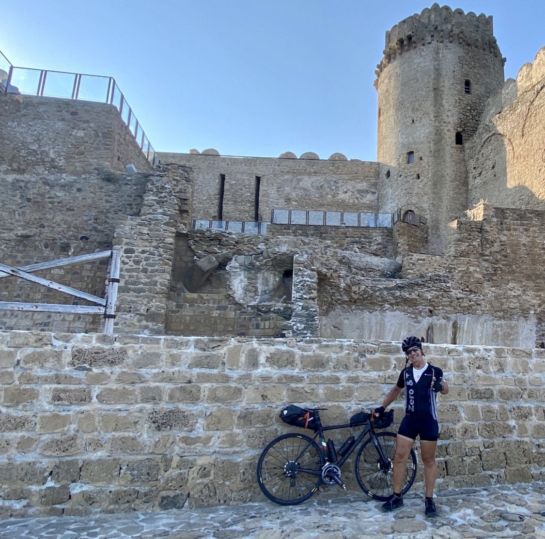 Con un po’ di buona volontà e con qualche località da visitare in meno, sarei arrivato uno o due giorni prima, ma col caldo torrido del pomeriggio mi chiedevo: “perché sfinirsi dal caldo e stancarsi il doppio per vedere la metà delle cose?” Così percorro la stupenda costa, che nel frattempo inizia con sali scendi più impegnativi e supero il bellissimo lungomare di Reggio Calabria. A Reggio tento invano una visita ai Bronzi di Riace, ingressi a numero chiuso causa virus. Riparto superando Villa San Giovanni come se non sapessi che è da lì che si va in Sicilia. Punto Scilla. Vuol dire che tornerò indietro una decina di chilometri per prendere il traghetto. Scilla è bellissima, atmosfera unica. Oltre alle spiagge colorate, caratteristici vicoli di vecchie case, la cattedrale, il Castello Ruffo. Bellissima e si mangia molto bene, come d’alta parte in tutti i posti visitati.