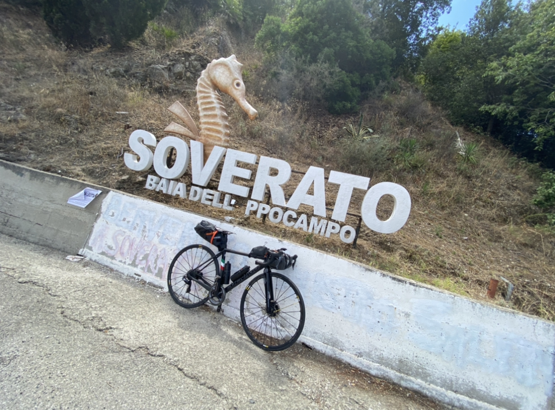Parto da Ascea Marina stando attento a non sbagliare strada, avevo già percorso questo insidioso è bellissimo Cilento. Invece no, stessa strada dell’anno scorso, stesso errore. Prendo per Palinuro, le indicazioni sono chiare. Noooo, avrei dovuto saltare Palinuro, quella strada infernale passa da Pisciotta con un paio di tratti impossibili da fare. Un pezzo del percorso, franato anni fa e sistemato in qualche modo, arriverà oltre il 20%.. altro pezzo fatto a piedi! Tanta la pendenza, che si faceva fatica a stare eretti. Ho rischiato di rotolare giù. Ripresa la bella SS18, dopo qualche chilometro, mi supera in salita un ciclista con le borse, saliva almeno a 20 all’ora. Lo ri incontro sulla strada intento a consultare il GPS, dopo 5, 6 chilometri pranziamo insieme. Si chiama Filippo e deve arrivare a Noto, forte triatleta con cui potrei condividere giusto 10-20km in pianura. Arrivo a Scalea stanco ma soddisfatto, nelle gambe altri 113km e D+2782 (D+ è il dislivello percorso in salita). Tanto! Domani giornata di riposo, dopo 1150km ci vuole 🙂