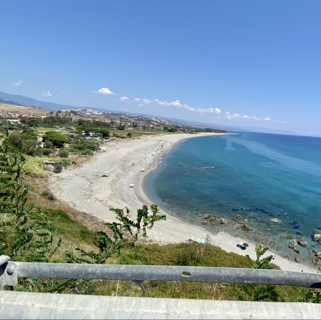 Il viaggio prosegue sulla statale Jonica SS18. Da Soverato la strada costeggerà il mare fino a Reggio Calabria. Passo una serie di paesi: Roccella Ionica, Siderno, Locri, tranquille località che, a parte un mare sempre stupendo, non hanno attrazioni particolari da proporre. Arrivo a Brancaleone Marina dove incontro un amico ciclista. Francesco fa parte di un gruppo che utilizza per lo più mountain bike. Parliamo di questo viaggio e di come anche lui in futuro vorrebbe provarci. Dopo aver percorso il bel lungomare, trovo un villaggio super attrezzato e organizzato e mi ci fiondo. La sera, sulla pagina Facebook, ho un invito per una birra o una cena dal gruppo dell’amico incontrato nel pomeriggio. Peccato non aver la forza per riprendere la bici e fare i 3-4 km per raggiungere il gruppo.